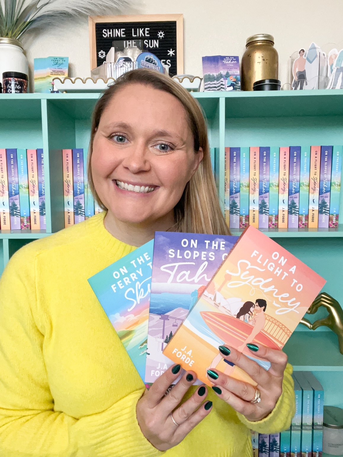 J.A. Forde is a romance writer, Navy wife, and full-time mom to two crazy kids (and a furry pup). She currently resides in Nevada with her family where you’ll most likely find her with her nose stuck in a book… or more realistically chasing her two kids with an audiobook in her earbuds. She loves to travel and go on adventures which is why she decided to set her first book in Sydney, Australia. She hopes to write more books set in fun locales both as an escape for herself in writing, and for you as the reader!